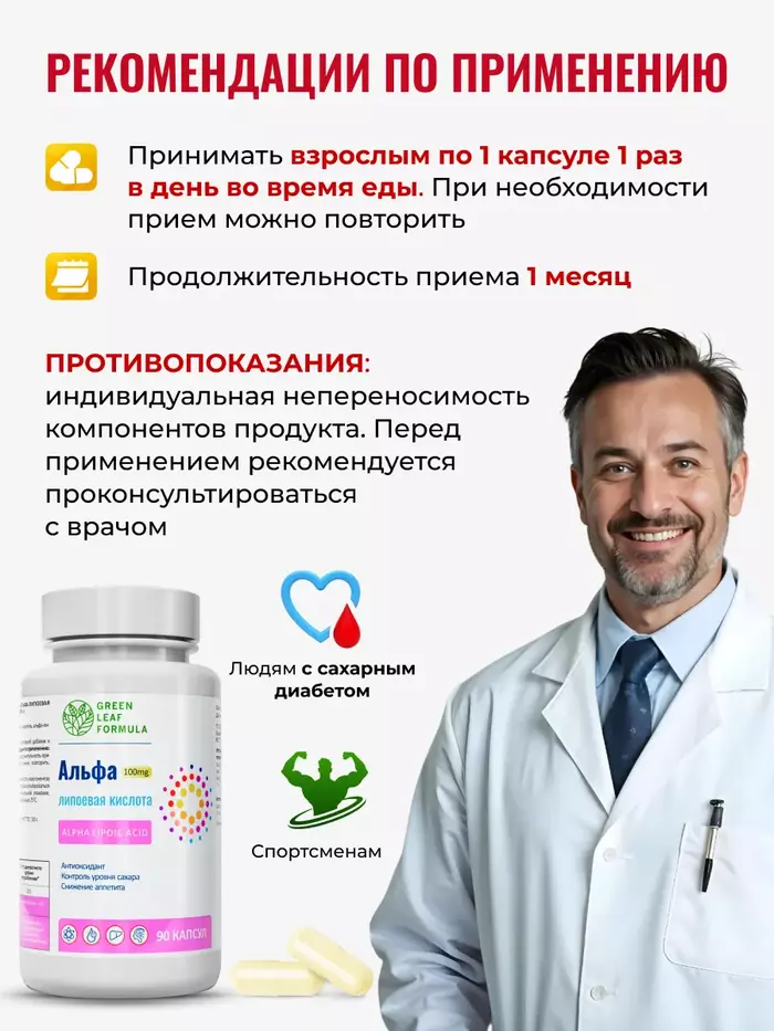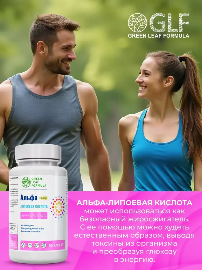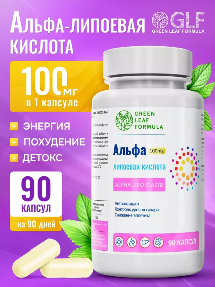 GREEN LEAF FORMULA Альфа-липоевая кислота (100мг), 90 капсул