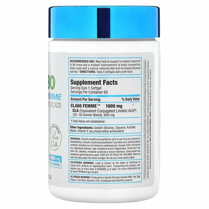 Исследования показали, что КЛК также имеет множество преимуществ для здоровья. CLA80 FEMME ™ - это проверенное дополнение к худощавому и здоровому образу жизни.