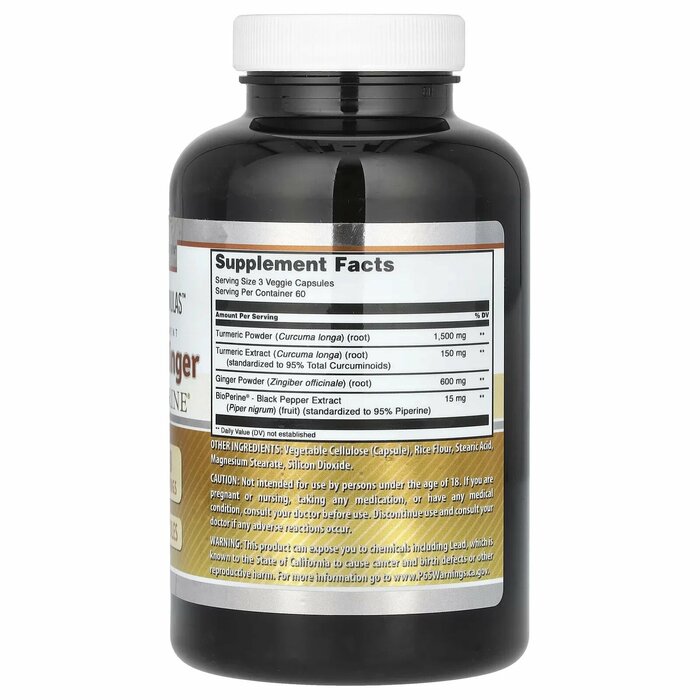 С пищевой добавкой Amazing Formulas с куркумой и имбирем вы можете получить здоровую дозу антиоксидантов и противовоспалительных средств, полезных для сердца и суставов. Таблетки с имбирем и куркумой выпускаются в капсулах по 1500 мг, во флаконе содержится 180 растительных капсул.