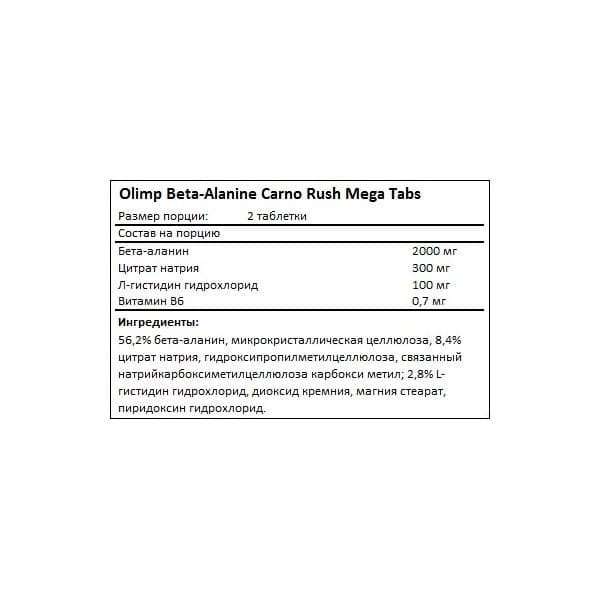 Капсулы Beta-Alanine Carno Rush Mega не имеют вкуса, что позволяет легко комбинировать их с другими добавками. Продукт подходит для спортсменов, стремящихся улучшить свои результаты в силовых и выносливостных видах спорта.