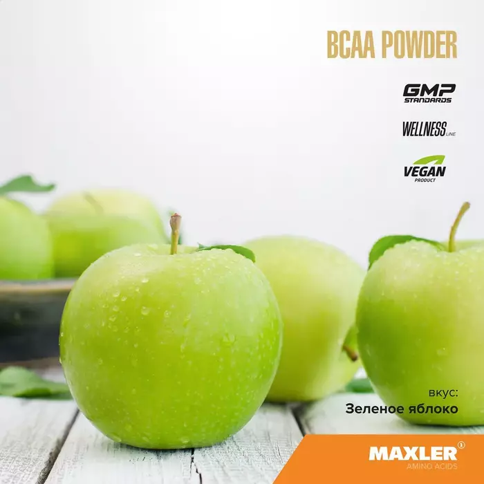 Maxler Аминокислотный комплекс BCAA 2:1:1, Зеленое яблоко — это высококачественная добавка, содержащая разветвленные аминокислоты в оптимальном соотношении 2:1:1. Комплекс разработан для поддержки мышечного роста, восстановления и повышения выносливости во время физических нагрузок. Вкус зеленого яблока делает прием добавки приятным и освежающим.