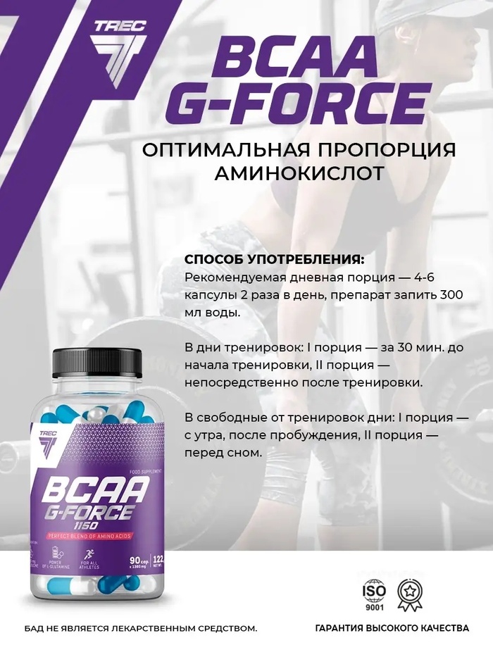 Trec Nutrition BCAA G-Force отличается высокой концентрацией активных ингредиентов и удобной формой капсул, что обеспечивает легкость приема и максимальную эффективность. Продукт подходит для всех уровней подготовки и может использоваться как до, так и после тренировок для достижения наилучших результатов.