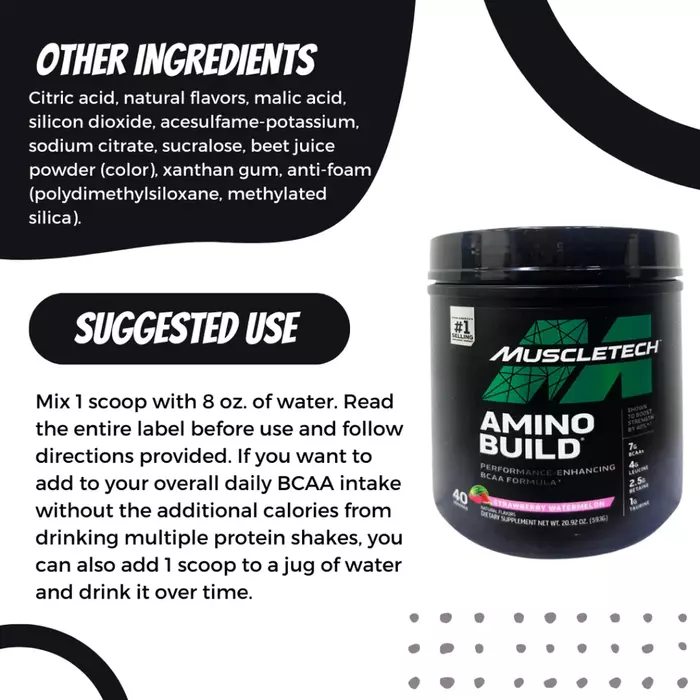 Аминокислотный комплекс Amino Build Клубника-Арбуз от MuscleTech — это идеальное решение для поддержки ваших тренировок и восстановления. В каждой упаковке содержится 593 г высококачественного аминокислотного комплекса с освежающим вкусом клубники и арбуза, который поможет вам достичь ваших фитнес-целей.