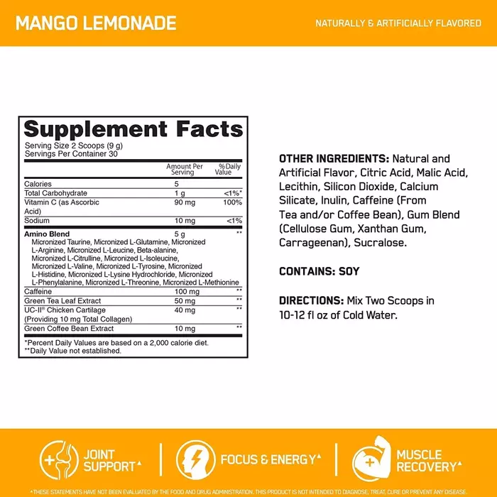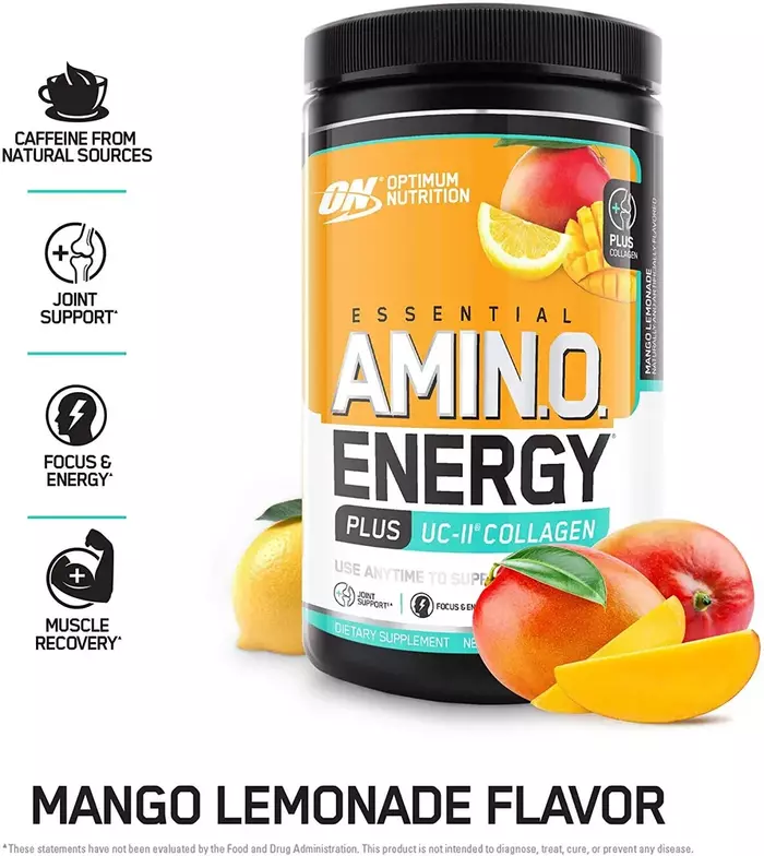 Аминокислота в порошке Optimum Nutrition Amino Energy Plus UC-II Collagen манго 270 гр. — это отличный выбор для активных людей, стремящихся поддерживать свою физическую форму и улучшать восстановление после тренировок. Этот продукт сочетает в себе аминокислоты, коллаген и натуральные экстракты, что делает его идеальным дополнением к вашему рациону.