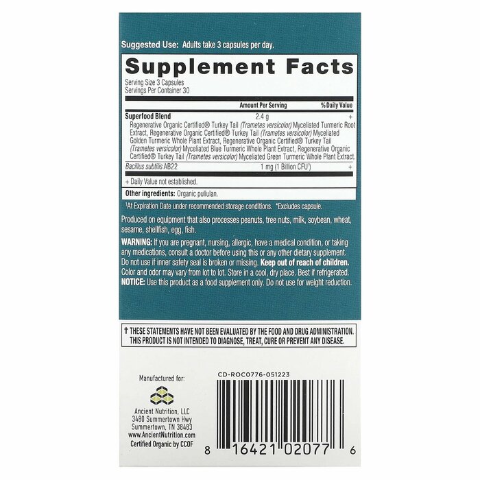 Золотистая куркума в сочетании с редкими и экзотическими голубой и зеленой куркумой для поддержания хорошего самочувствия всего организма. Мы также добавили клинически изученные пробиотики для поддержания здоровой микрофлоры кишечника и здоровья иммунной системы.