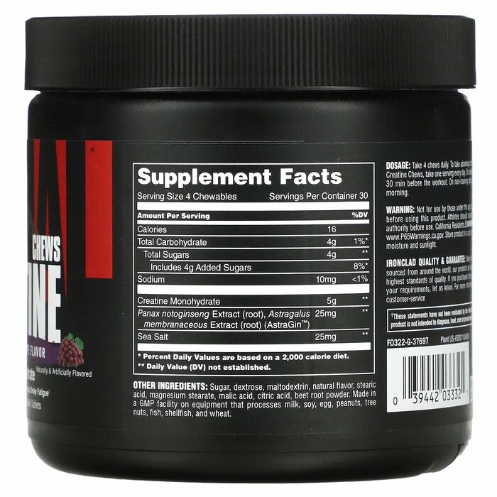Жевательные таблетки с креатином Animal Performance содержат один из наиболее изученных и эффективных ингредиентов, помогающих нарастить силу, объем и выносливость мышц — моногидрат креатина. Исследования показали пользу для когнитивного здоровья. В сочетании с AstraGin™, который, как было доказано исследованиями, способствует усвоению питательных веществ, наши жевательные таблетки со вкусом вкусных добавок обеспечивают удобную ежедневную поддержку ваших тренировок и повышения производительности.