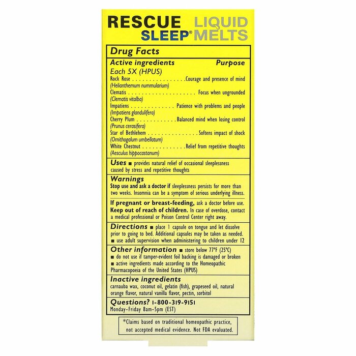 Полностью натуральные, ненаркотические и не вызывающие привыкания средства для сна Rescue Sleep в капсулах для рассасывания с жидкостью помогают при эпизодической бессоннице, вызванной стрессом и повторяющимися мыслями. Не содержат алкоголя и подходят для всей семьи.
