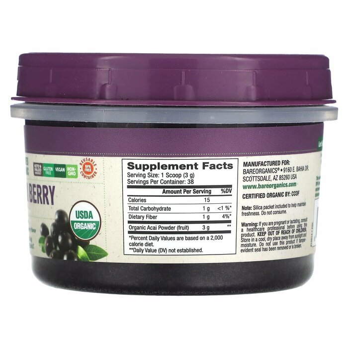 BareOrganics Лиофилизированные необработанные органические ягоды асаи, 114 г