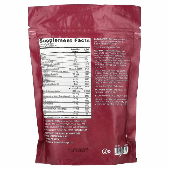 Bariatric Advantage Multi Chewy Bite - это восхитительный комплекс с высокой эффективностью, специально разработанный для удовлетворения потребностей в питательных веществах у пациентов с ожирением и обладающий великолепным вкусом.
