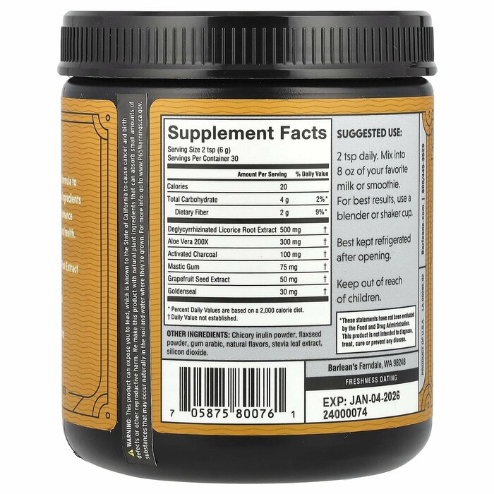 Barlean's Добавка для пищеварения Ванильный чай, 180 г