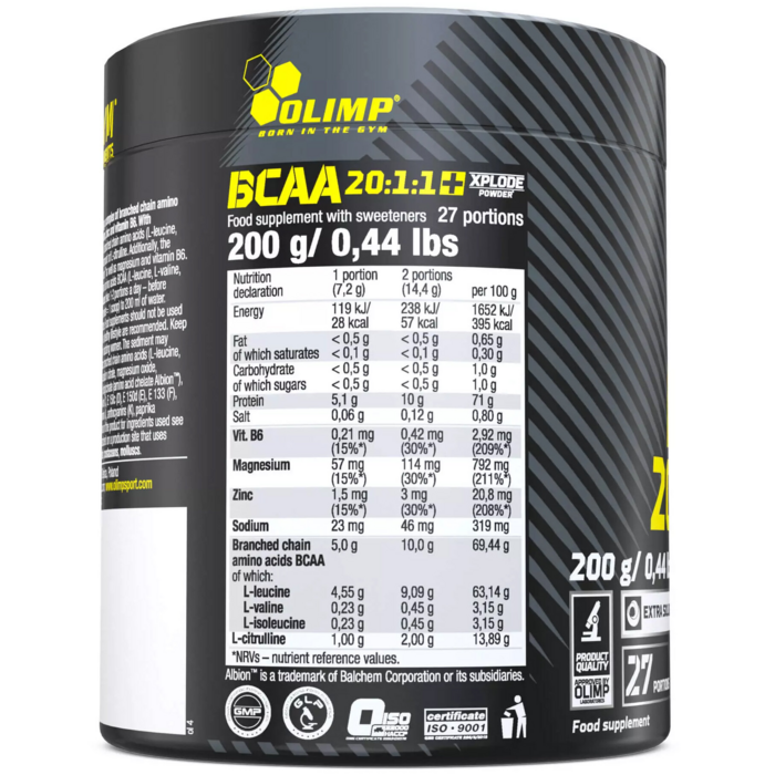 BCAA Olimp Sport Nutrition BCAA 20:1:1 Xplode Powder с вкусом грейпфрута — это высококачественная добавка, предназначенная для поддержки спортивных результатов и восстановления мышц. В каждой упаковке содержится 200 граммов порошка, который легко растворяется и обладает приятным вкусом.
