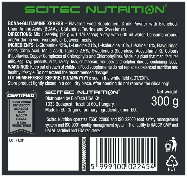BCAA Scitec Nutrition BCAA + Glutamine Xpress идеально подходит для использования как до, так и после тренировки. Продукт подходит для всех, кто стремится улучшить свои спортивные результаты и поддерживать здоровье мышц.