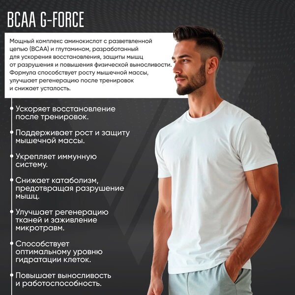 • Увеличение выносливости: BCAA способствуют улучшению физической работоспособности и выносливости во время интенсивных тренировок.