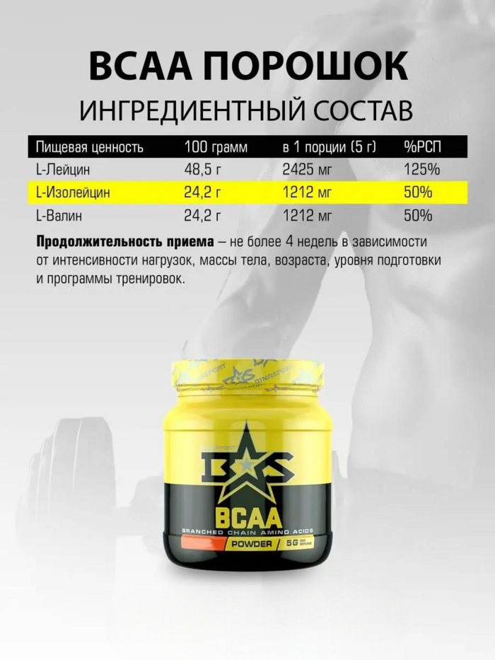 Порошок BCAA Вишня имеет приятный вкус и легко смешивается с водой или другими напитками. Он подходит для использования как до, так и после тренировки, а также в течение дня для поддержания уровня аминокислот в организме.