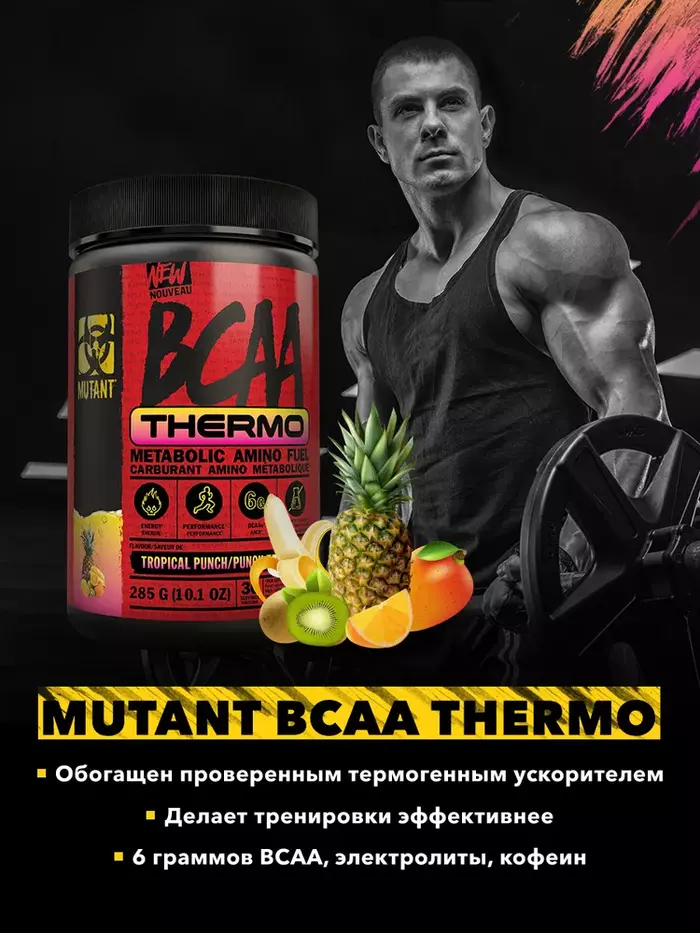 BCAA в порошке Mutant BCAA Thermo фруктовый пунш — это идеальный выбор для спортсменов и активных людей, стремящихся к улучшению своих результатов. В каждой упаковке содержится 285 граммов высококачественных аминокислот, которые помогут вам достичь новых высот в тренировках.