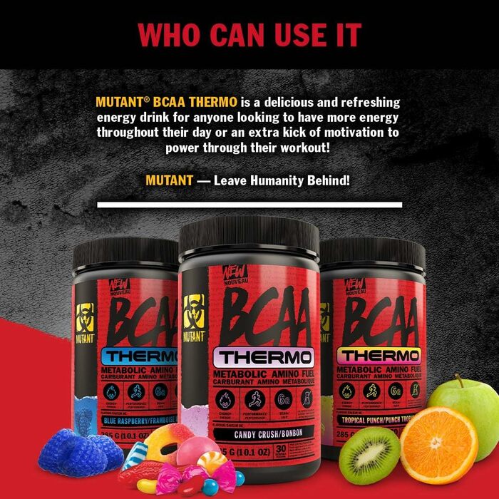 Mutant BCAA Thermo имеет уникальную формулу, которая включает в себя не только аминокислоты, но и термогенные компоненты, способствующие сжиганию жира. Продукт идеально подходит для использования во время тренировок и в качестве добавки к рациону для достижения спортивных целей.