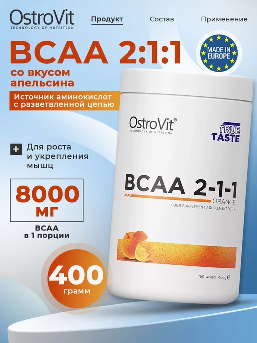 BCAA в порошке Ostrovit 8:1:1 с вкусом апельсина — это высококачественная добавка, предназначенная для поддержки спортивных результатов и восстановления после тренировок. В каждой упаковке содержится 400 граммов продукта, который поможет вам достичь ваших фитнес-целей.