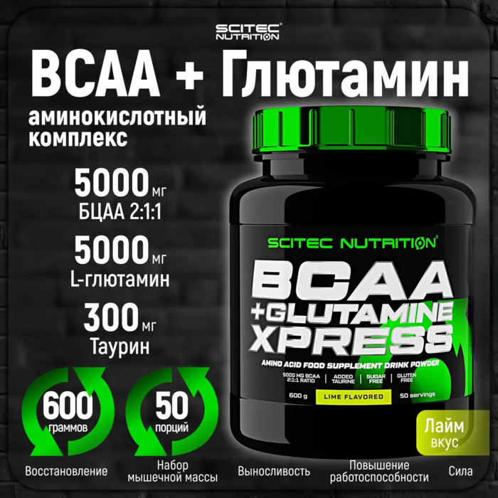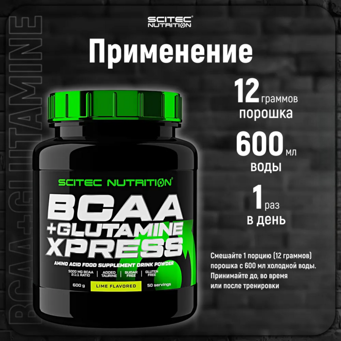 Scitec Nutrition BCAA+Glutamine Xpress имеет приятный вкус лайма и подходит для спортсменов, стремящихся улучшить свои результаты. Продукт идеально подходит для использования во время тренировок и в восстановительный период.