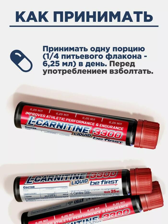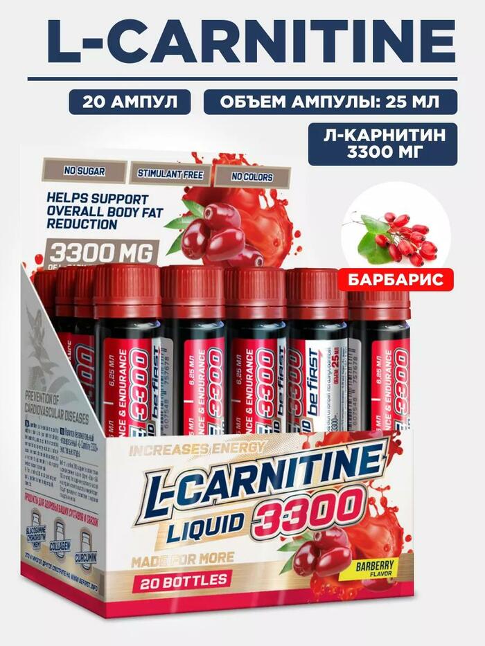 Be First L-carnitine 3300 25 мл (барбарис) — это высококачественная добавка, предназначенная для поддержки физической активности и улучшения обмена веществ. В каждой упаковке содержится 25 мл мощного L-карнитина с приятным вкусом барбариса, который поможет вам достичь ваших фитнес-целей.