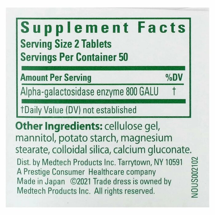 Содержит натуральный фермент, который помогает переваривать пищу, вызывающую газообразование.