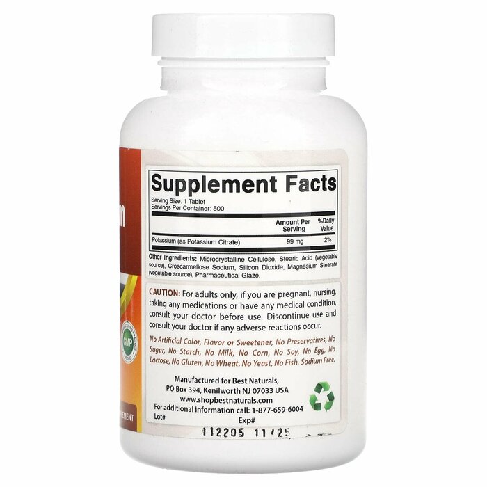 Best Naturals Цитрат калия (99 мг), 500 табл