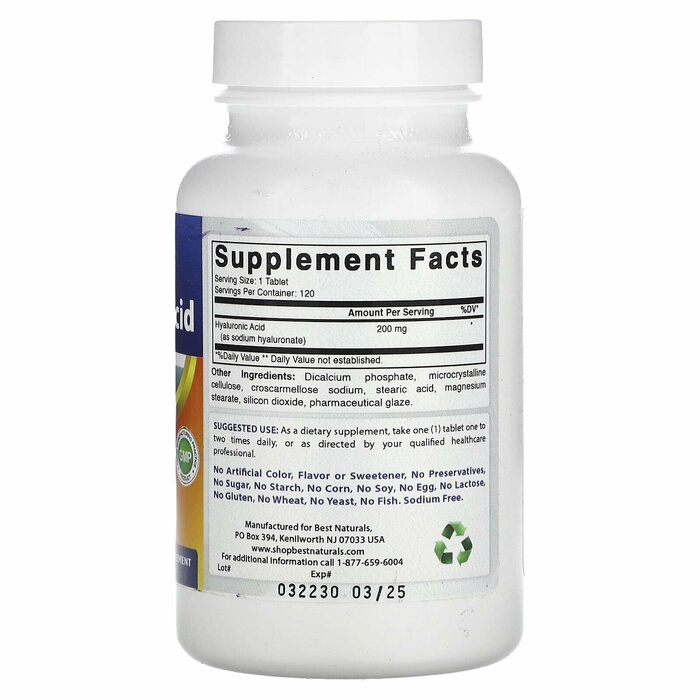 Best Naturals Гиалуроновая кислота (200 мг), 120 табл
