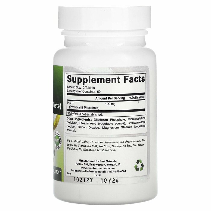 Best Naturals Пищевая добавка P-5-P (100 мг), 120 табл
