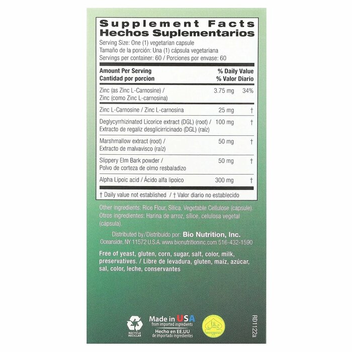 Bio Nutrition Добавка для здоровья желудка, 60 капсул