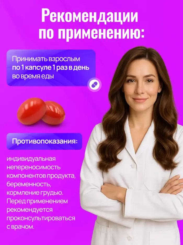 Принимать по 1 капсуле 1 раз в день во время еды или в соответствии с рекомендациями специалиста
