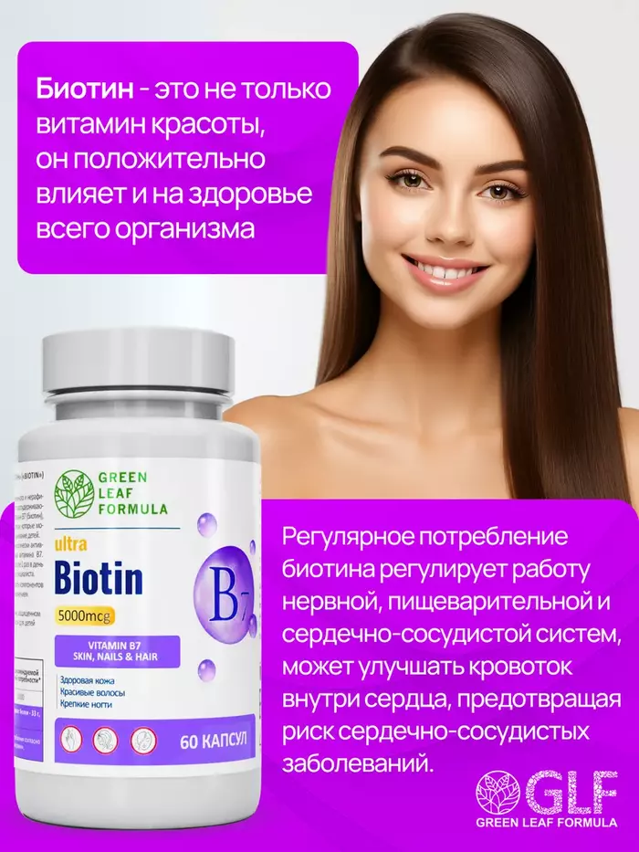 GREEN LEAF FORMULA Биотин 5000 (5000 мкг), 60 капсул