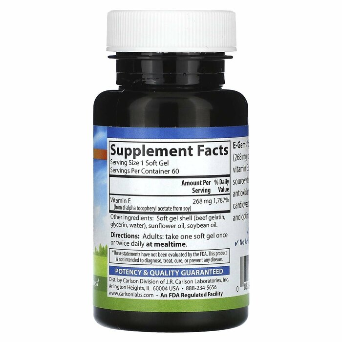 E-Gems® содержит 400 МЕ (268 мг) витамина Е из натурального источника в каждом мягком геле. Витамин Е из натурального источника - это мощный антиоксидант, который способствует здоровью сердечно-сосудистой системы и оптимальному самочувствию.