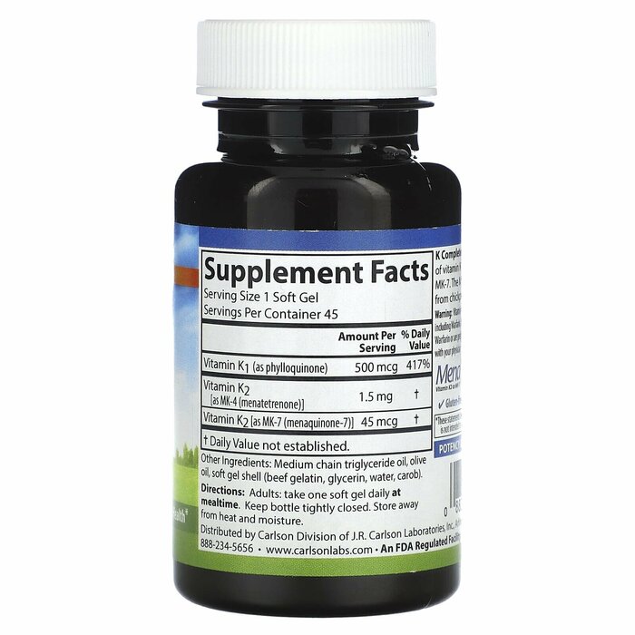K Complete provides the dynamic trio of vitamin K1, K2 as MK-4, and K2 as MK-7. The MK-7 in this formula is derived from chickpeas.