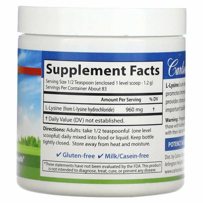 Carlson L-лизин аминокислота в форме порошка, 100 г