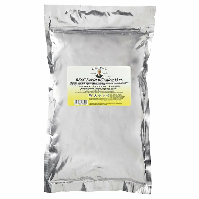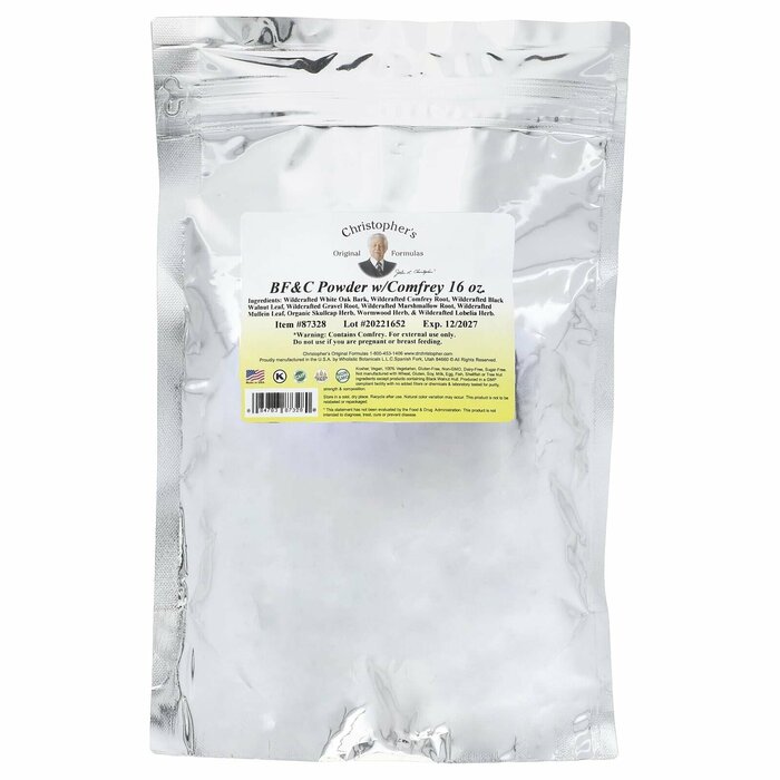 Проверенный временем порошок BF и C с окопником лекарственным от Christopher's Original Formulas поддерживает здоровье костей, кожи, тканей, волос, ногтей, зубов и десен.