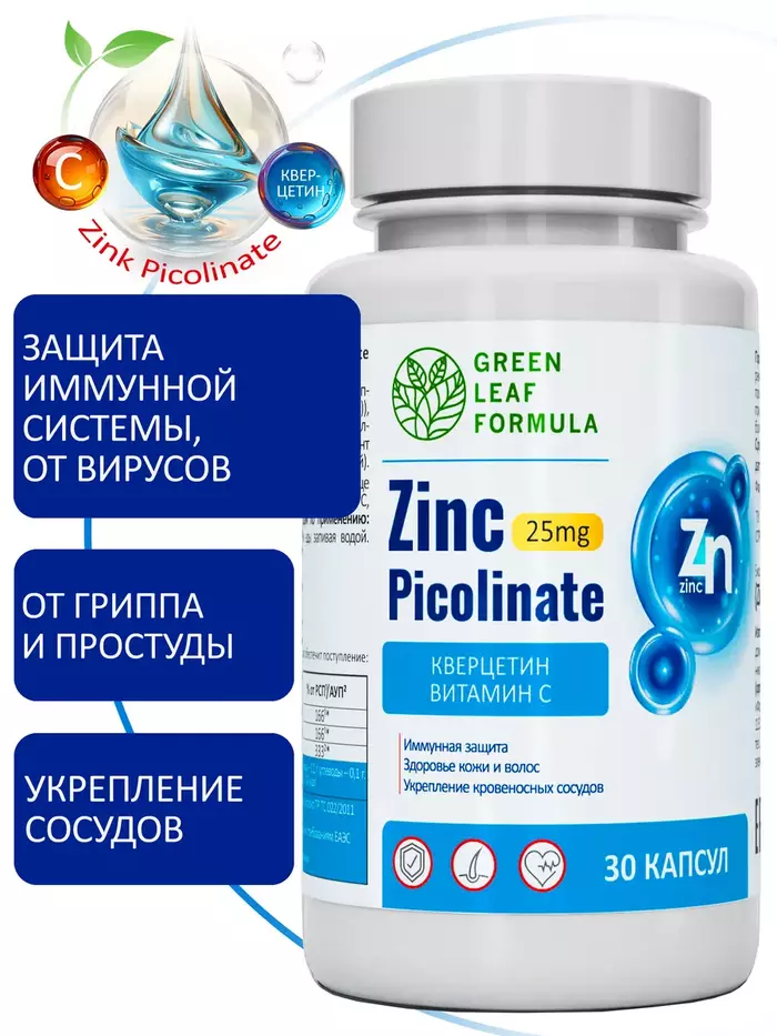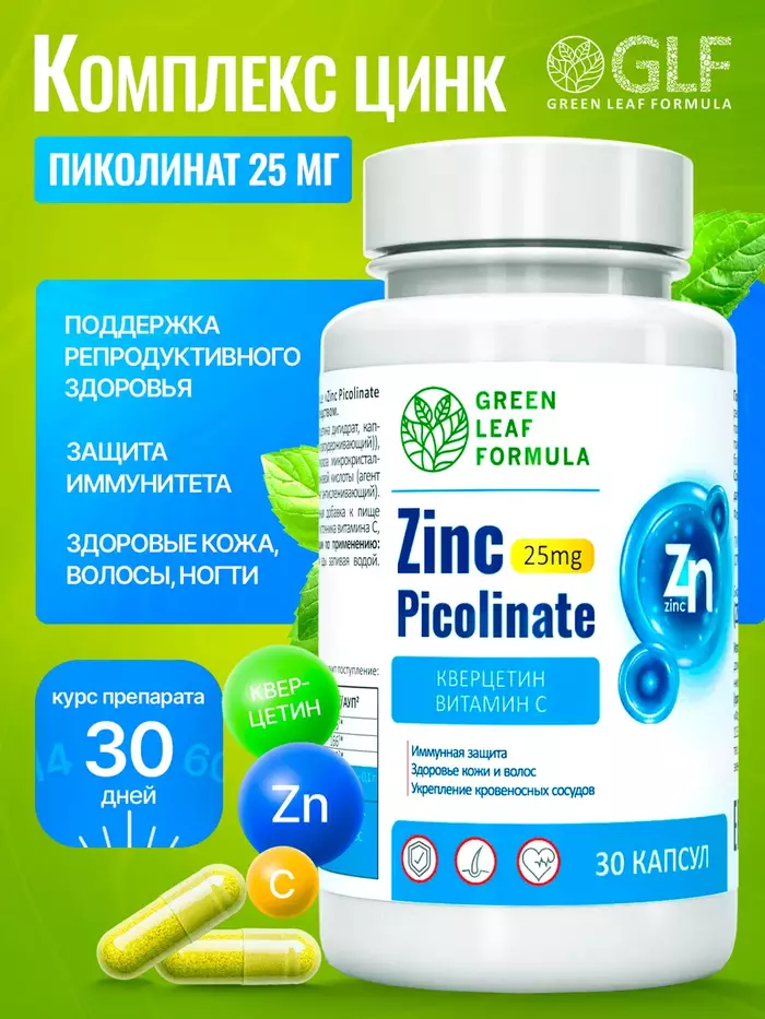 GREEN LEAF FORMULA Цинк пиколинат (25 мг), 30 капсул