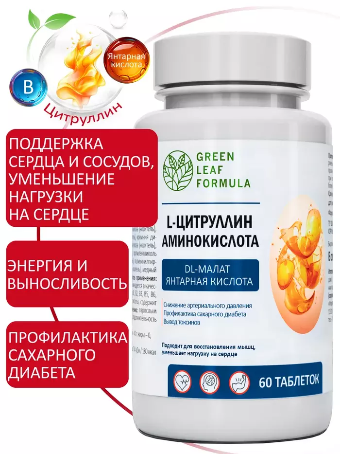 Цитруллин Комплекс витаминов для сердца и сосудов, 60 табл от GREEN LEAF FORMULA купить с доставкой по Москве и всей России в интернет-магазинах на Beautery можно с максимальной выгодой.