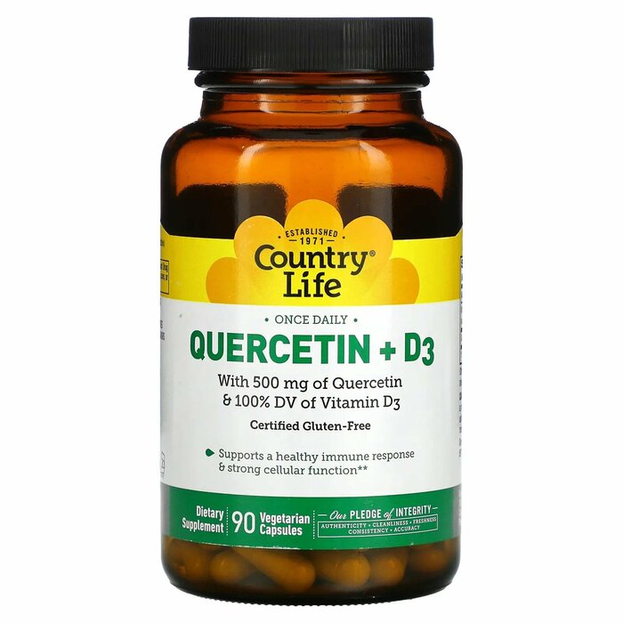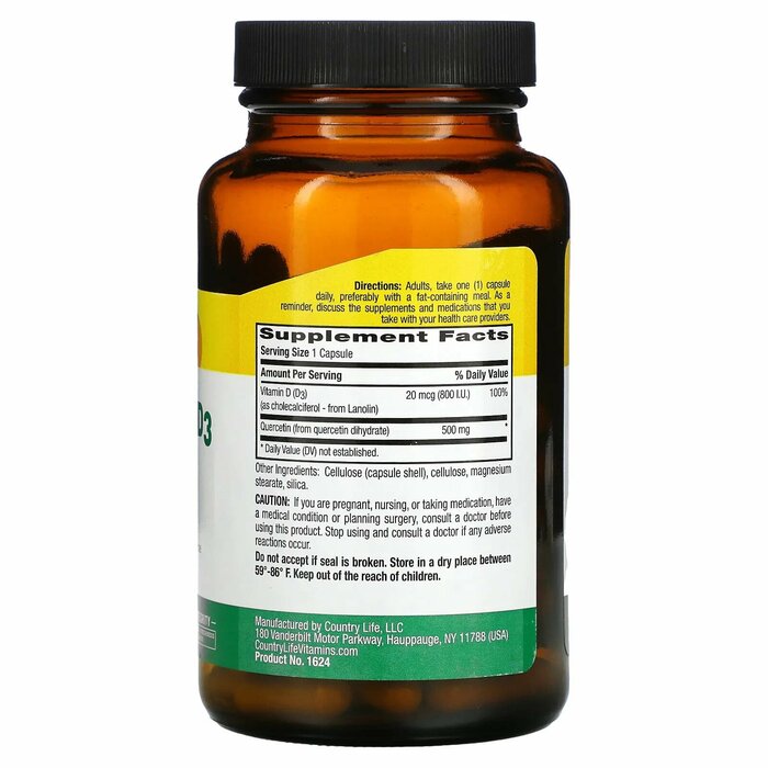 - Содержит 500 мг кверцетина и 100% суточной нормы витамина D3
