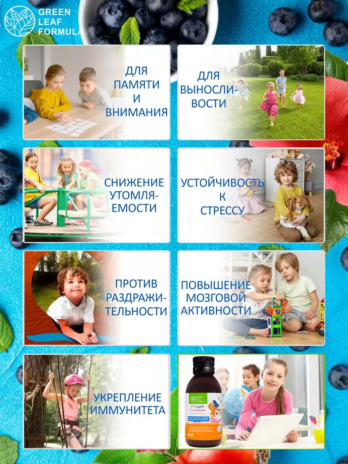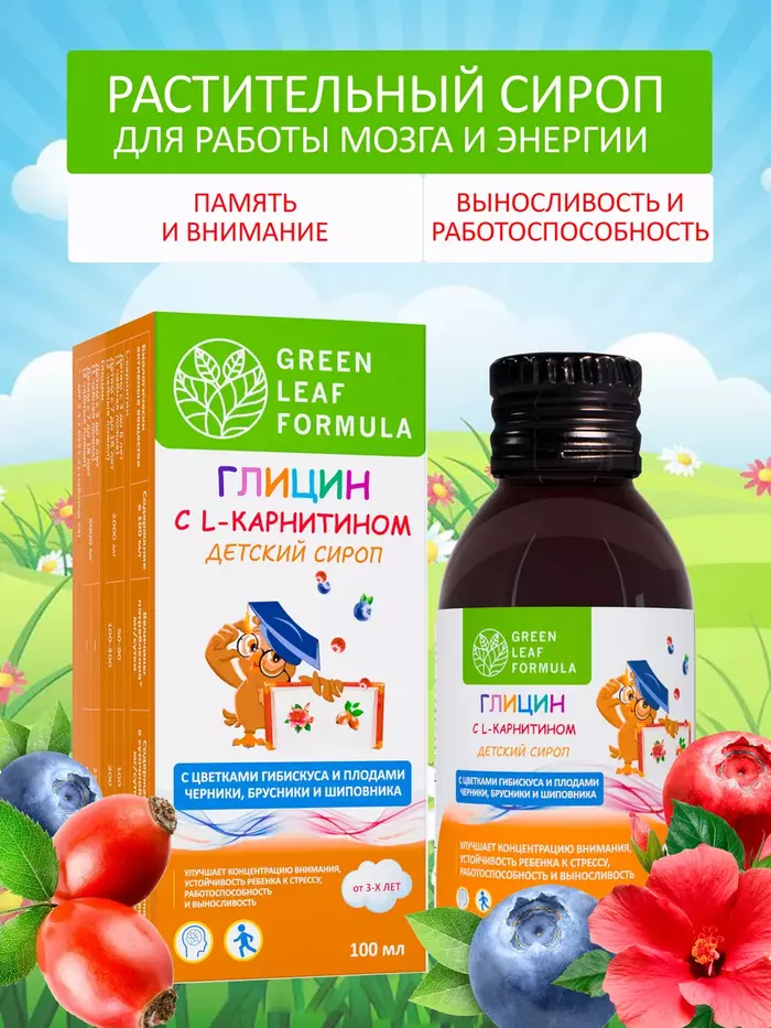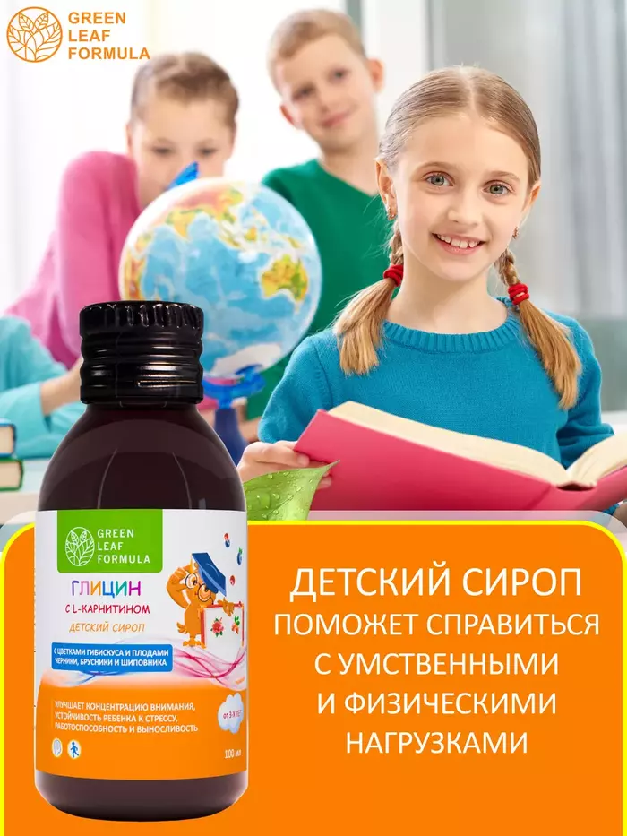 Детский сироп Глицин с L-карнитином для памяти и внимания, 100 мл от GREEN LEAF FORMULA купить с доставкой по Москве и всей России в интернет-магазинах на Beautery можно с максимальной выгодой.