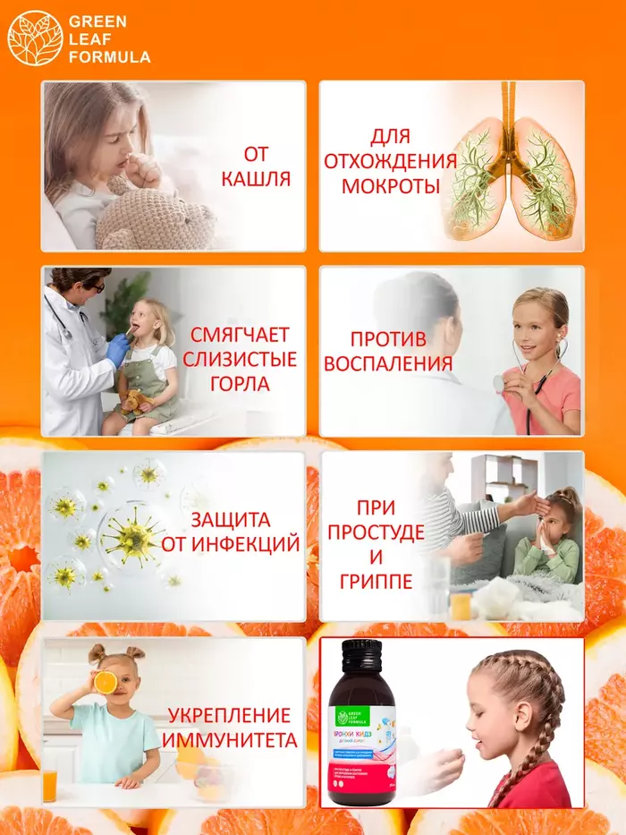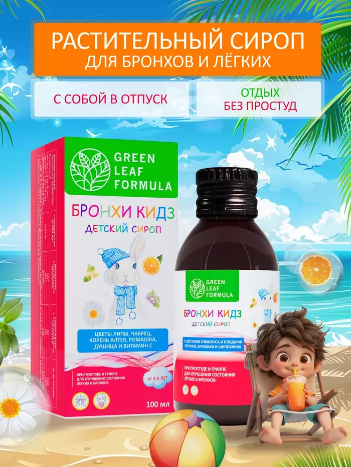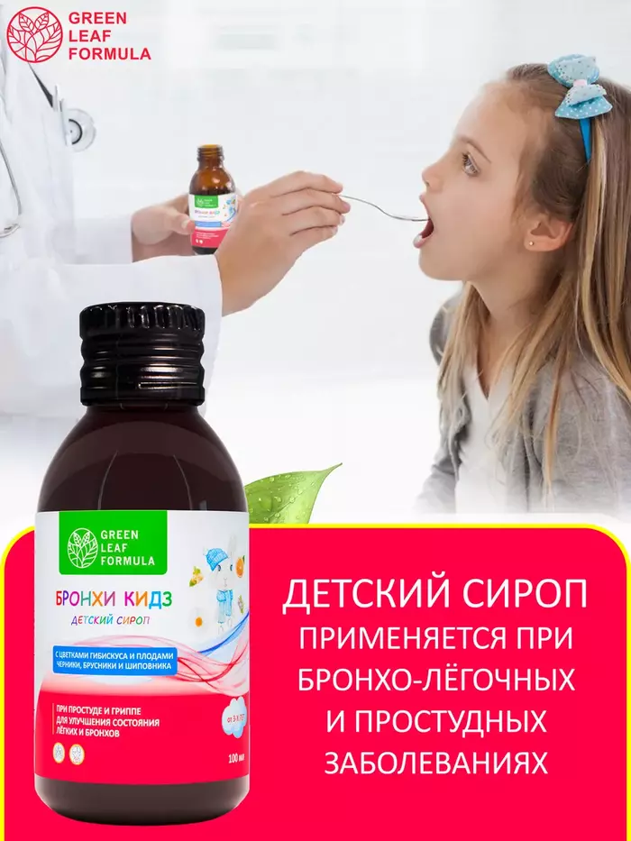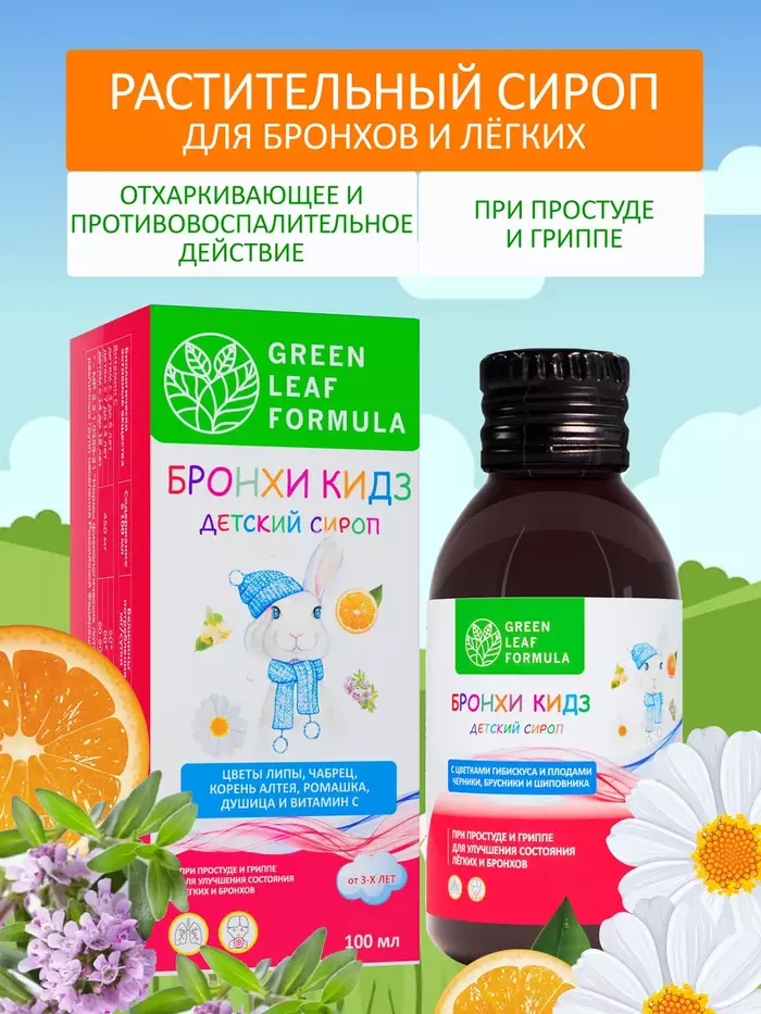 Детский сироп от кашля Бронхи Кидс от простуды и гриппа, 100 мл от GREEN LEAF FORMULA купить с доставкой по Москве и всей России в интернет-магазинах на Beautery можно с максимальной выгодой.