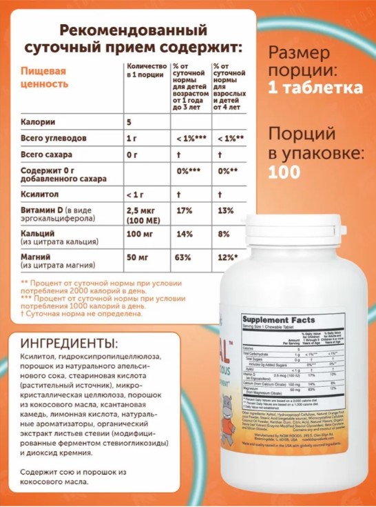 Жевательные таблетки для детей с кальцием NOW® — это вкусные жевательные пастилки, которые понравятся детям, а также обеспечат им необходимые кальций, магний и витамин D.