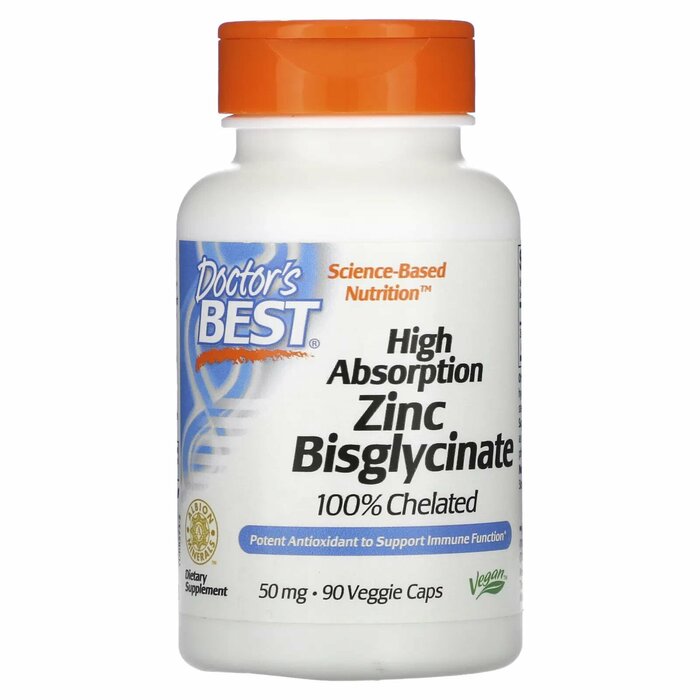 Doctor's Best Легкоусвояемый бисглицинат цинка в хелатной форме (50 мг), 90 капсул