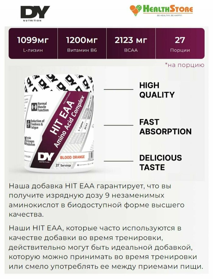 Продукт имеет приятный вкус апельсина и легко смешивается с водой, что делает его удобным для использования в любое время. Dorian Yates DY Nutrition HIT EAA подходит как для профессиональных спортсменов, так и для любителей фитнеса, стремящихся улучшить свои результаты.