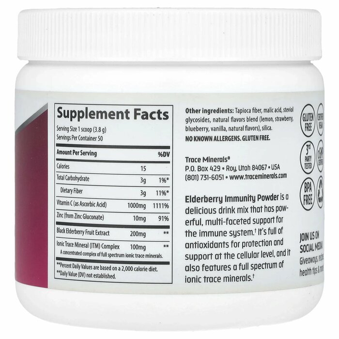 Trace Minerals ® Порошок из бузины для иммунитета Ягоды и лимон, 190 г