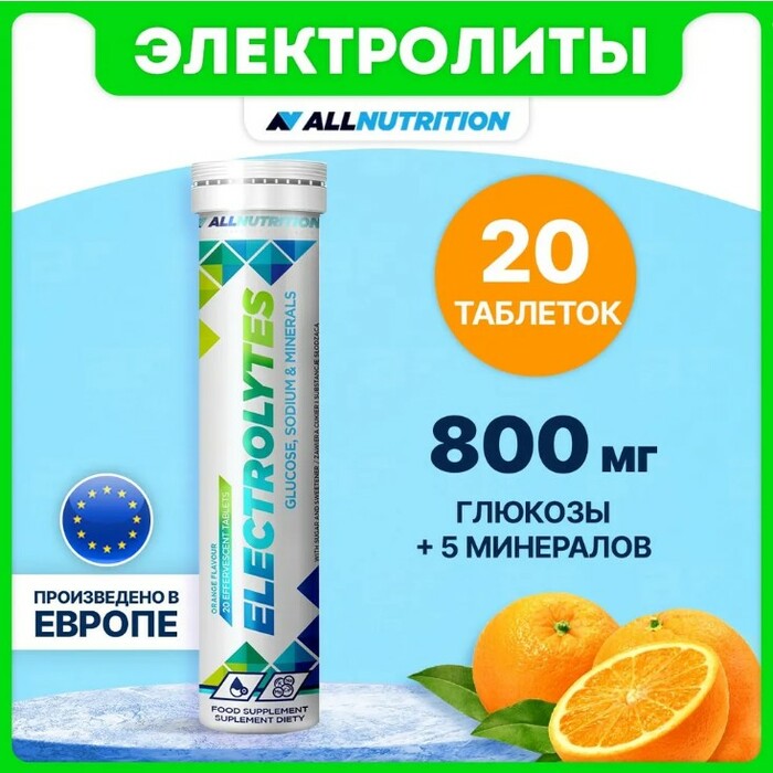 Электролиты спортивные All Nutrition — это идеальное решение для восстановления водно-солевого баланса и повышения выносливости. В каждой упаковке содержится 20 шипучих таблеток с освежающим вкусом апельсина, которые помогут вам поддерживать оптимальный уровень гидратации во время тренировок.