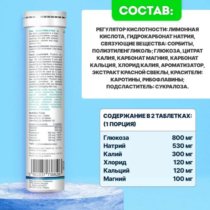 Шипучие таблетки имеют яркий апельсиновый вкус, что делает их приятными для употребления. Продукт подходит для использования как до, так и после физических нагрузок, обеспечивая необходимую поддержку вашему организму.