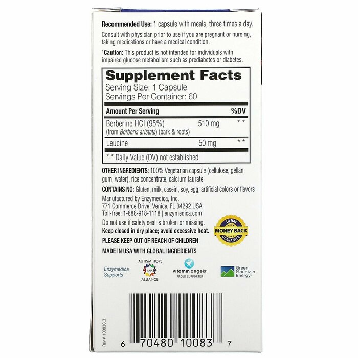 Берберин Enzymedica стандартизирован для максимальной эффективности и получен из барбариса.