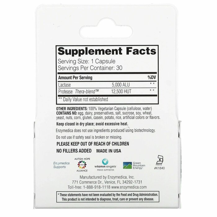 Enzymedica не использует ингредиенты, полученные с помощью биотехнологий.