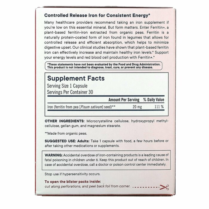 Многие врачи рекомендуют принимать добавки железа, если у вас недостаточное количество этого важного минерала. Но форма имеет значение. Введите Ferritin+, ферритин-железо на растительной основе, извлеченный из органического гороха. Ферритин — это содержащаяся в бобовых культурах форма железа, покрытая естественным белком, которая обеспечивает контролируемое высвобождение и эффективное всасывание, что помогает свести к минимуму расстройство пищеварения. Наши клинические исследования показали, что ферритин-железо на растительной основе может эффективно повышать и поддерживать здоровый уровень железа. Поддерживайте уровень энергии и выработку эритроцитов с помощью Ferritin+.