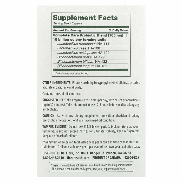 Пробиотик Complete Care от Flora — это смесь 6 штаммов полного спектра, разработанная профессионалами для обеспечения баланса всего кишечного тракта. Разнообразные лактобактерии и бифидобактерии обеспечивают состав, который более близкий к нормальному составу кишечной флоры. Пробиотик Complete Care обеспечивает ежедневную поддержку здоровой флоры и здоровья желудочно-кишечного тракта.