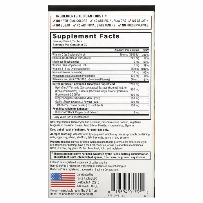 Таблетки Better Turmeric ™, содержащие ингредиенты премиального качества, обеспечивают превосходное усвоение, способствуют здоровой воспалительной реакции и облегчают незначительные боли.